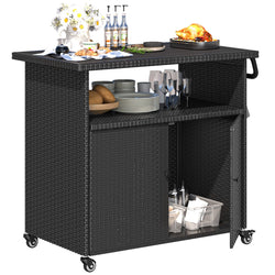YODOLLA Outdoor Bar Cart with Rattan Storage Cabinet, Brown