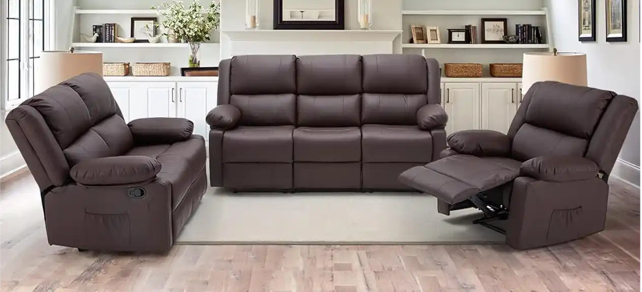 · In StockYODOLLA 3 PCS Recliner Sofa Set Overstuffed Leather Reclining Sofa, Brown