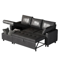 YODOLLA Faux Leather L-Shaped Sleeper Sofa, Pullout Bed, USB & Storage, Black