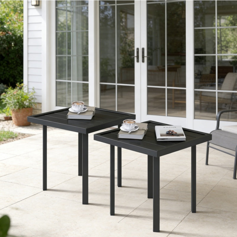 YODOLLA Square Outdoor Side Table Pool End Table, Metal Easy Maintenance (2pcs)