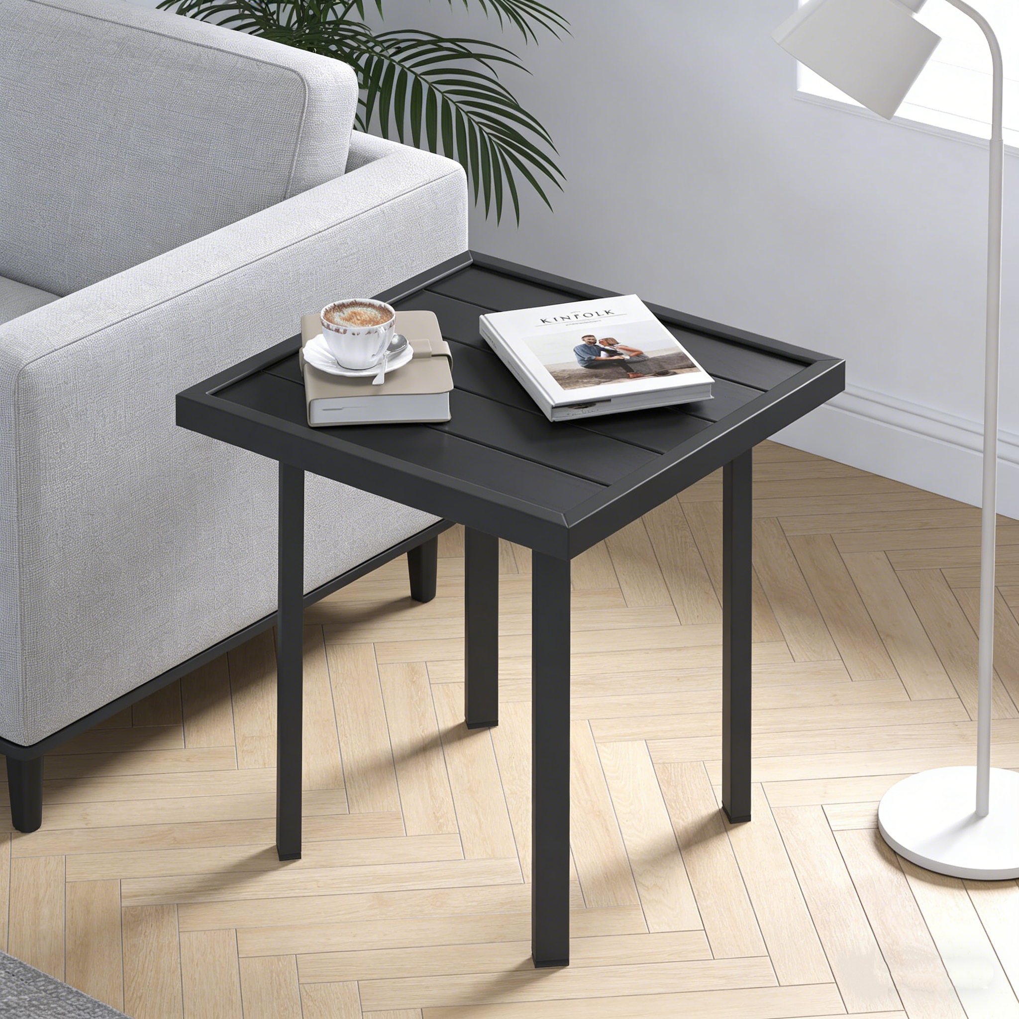 YODOLLA Square Outdoor Side Table Pool End Table, Metal Easy Maintenance (1pcs)