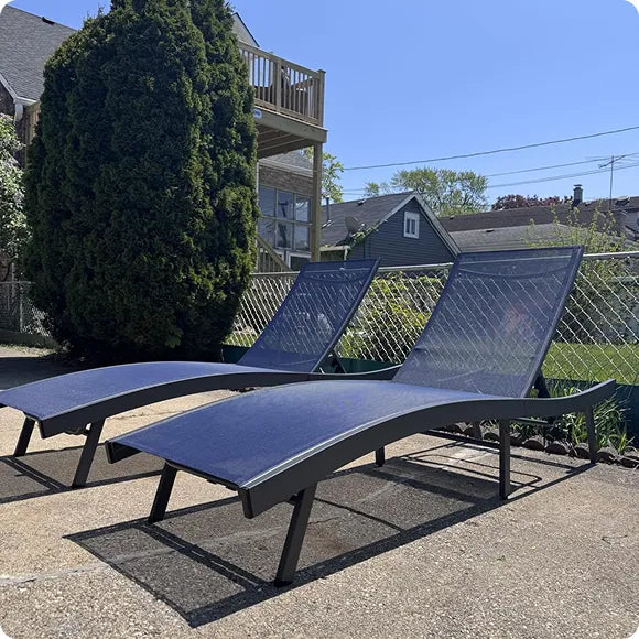 Super comfortable, no assembly needed, and they look great in the backyard. These outdoor chaise lounges are perfect for relaxing outside—the adjustable backrest is a big plus.