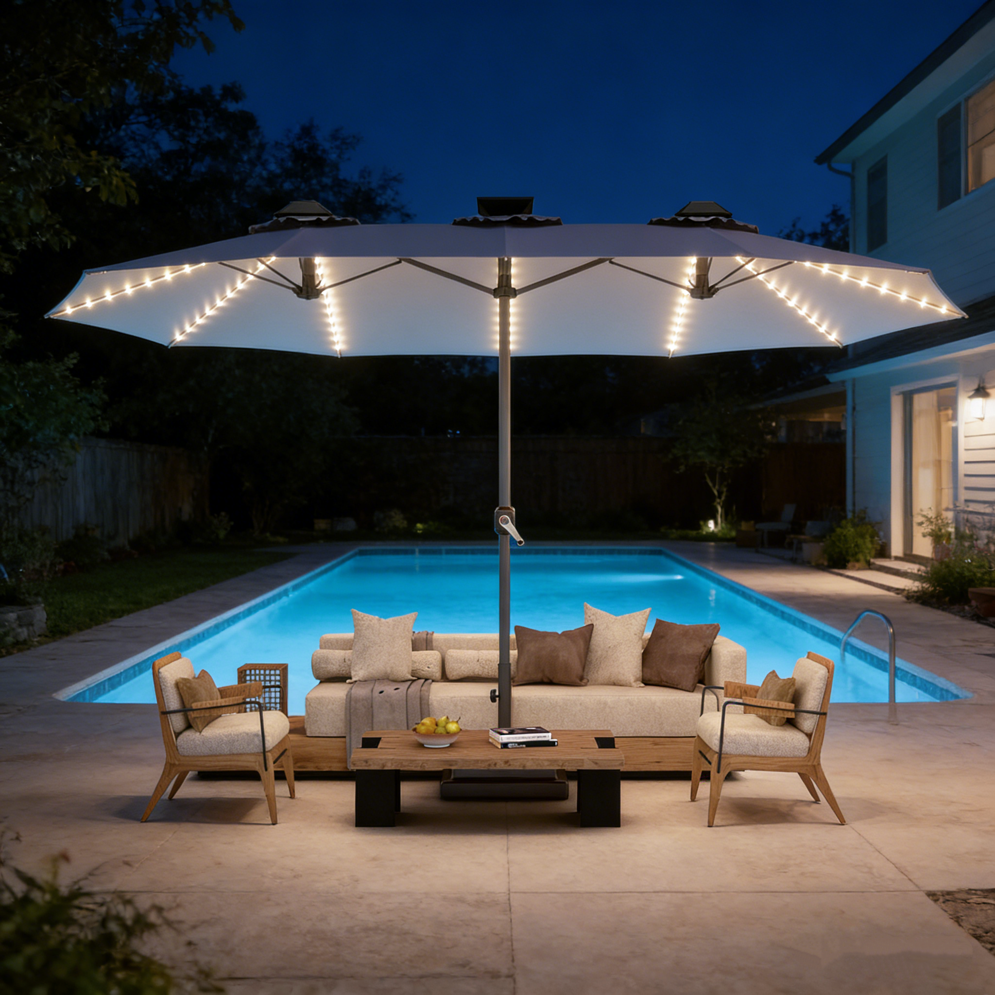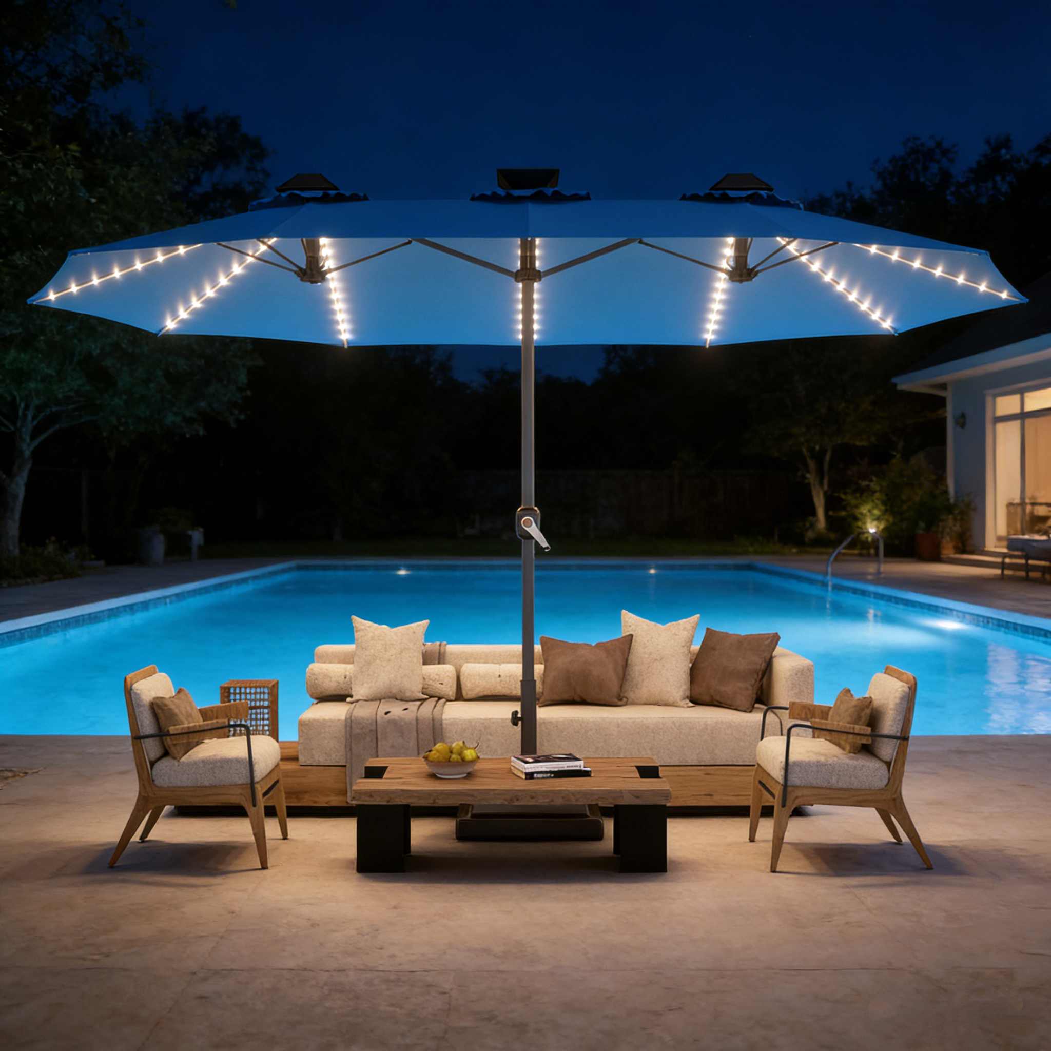 At night, 156 built-in LED lights powered by a solar panel or Type-C connection keep your space glowing without extra wiring. Whether you prefer a bold yellow patio umbrella, a classic black, or a vibrant red umbrella for patio, all styles are made to last—and easy to open with a simple crank.