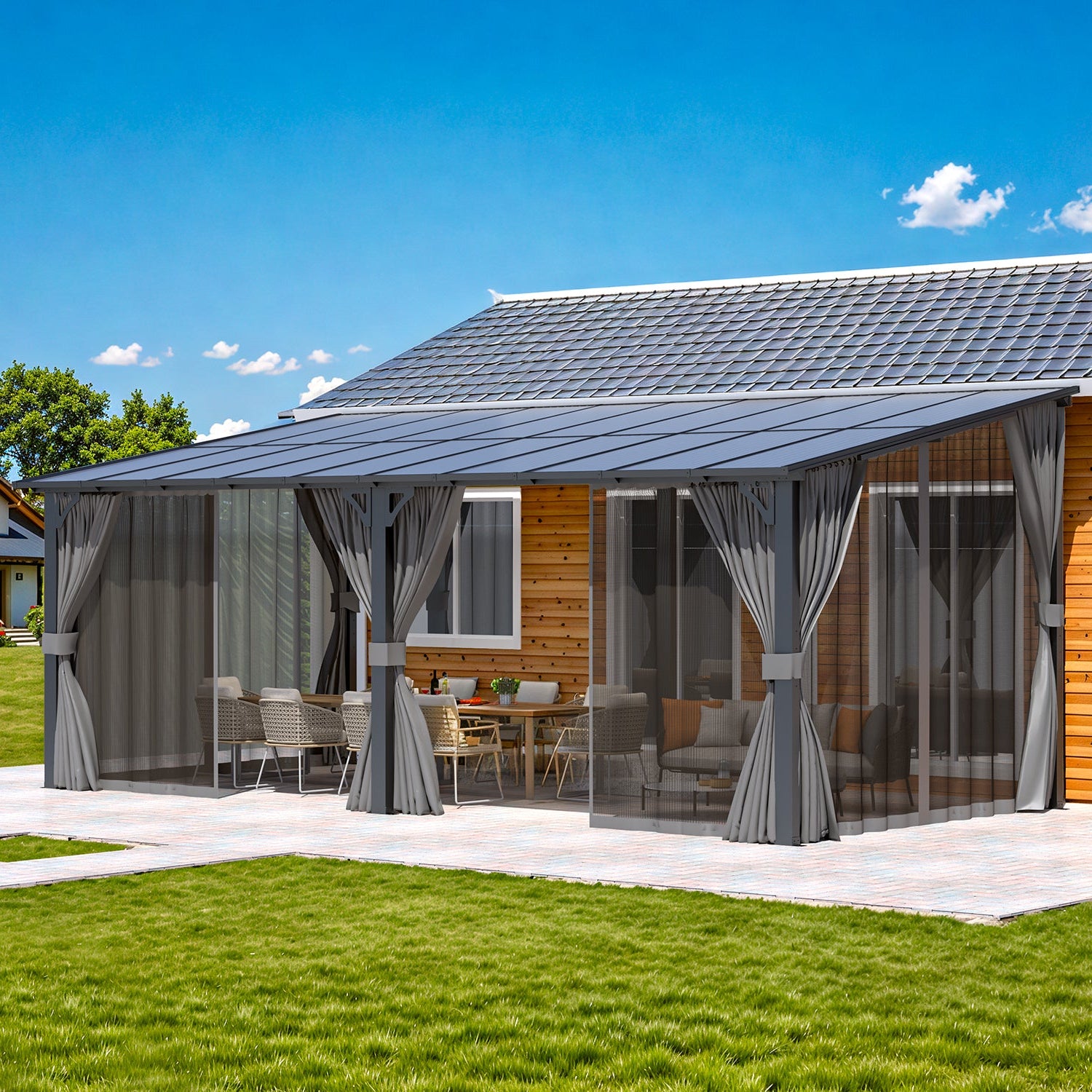 YODOLLA 20’ x 12’ Wall-Mounted Lean to Pergola Gazebo with Curtains and Netting