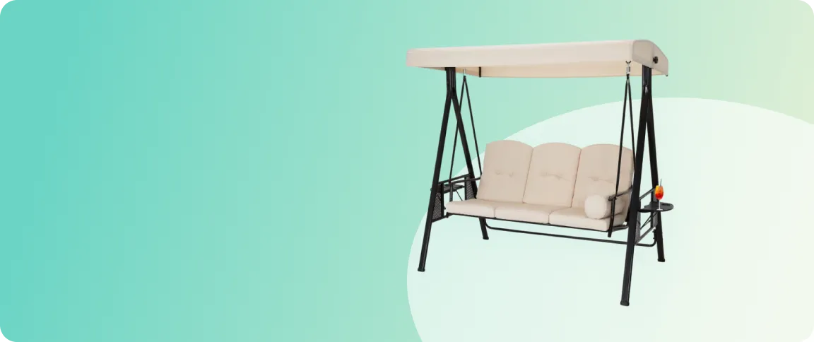 YODOLLA 3-Seat Patio Porch Swing Chair, Beige