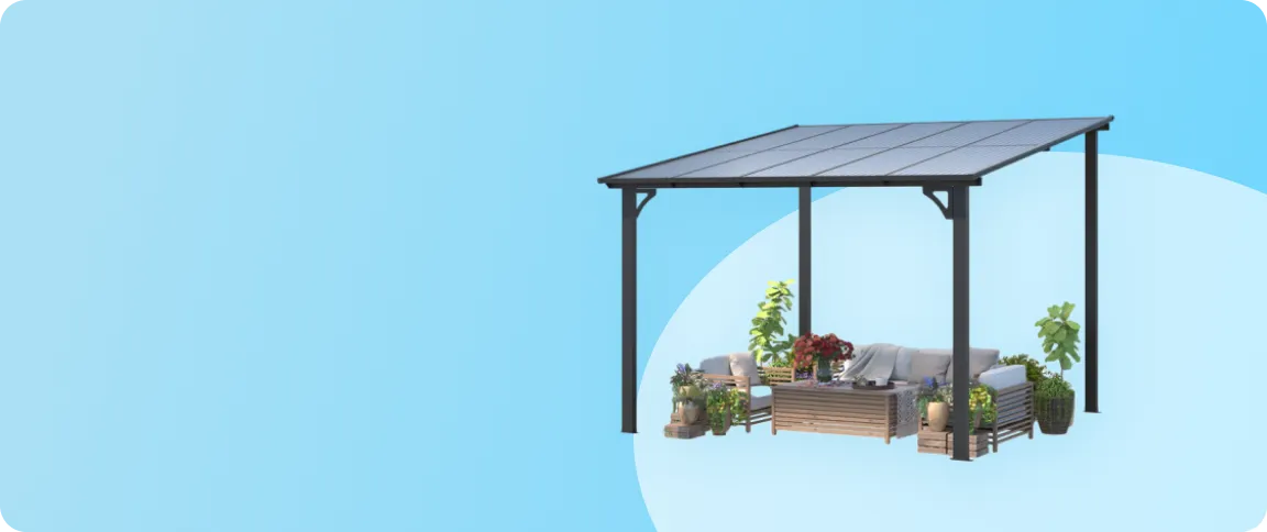 YODOLLA 10' x 8' Gazebo Outdoor Pergola for Patio, 8x10 Freestanding Lean to Hard Top Grill Gazebo Carport Pergolas and Gazebos Clearance with Roof