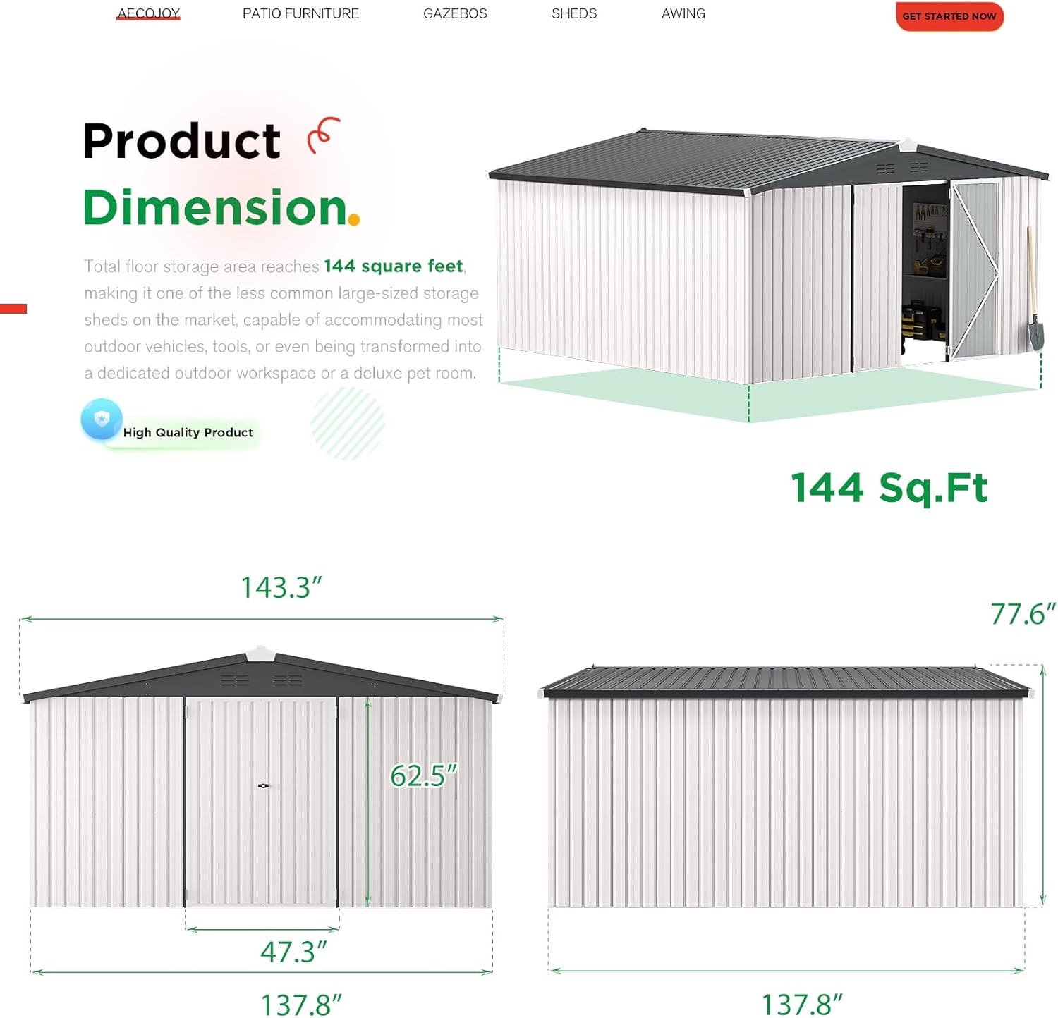 • Ample Storage Space: Boasting a total floor storage area of 144 Sq.Ft, our backyard sheds are among the larger options available. It is capable of accommodating a variety of outdoor vehicles, tools, or even serving as a dedicated outdoor workspace or deluxe pet room. Perfect as a garden tool shed for your gardening supplies.