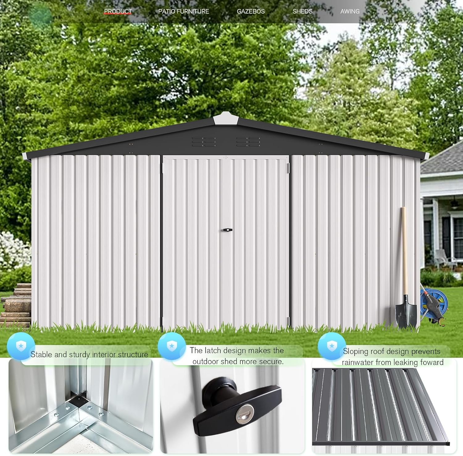 The YODOLLA 12' x 12' Storage Shed in white offers effortless installation with a user-friendly guide, detailed manuals, and tutorials, ensuring a smooth setup. Our expert technical team is available for remote assistance whenever you need help with your heavy-duty shed. With 144 Sq.Ft. of storage space, this backyard shed is ideal for storing outdoor vehicles, tools, or even serving as a dedicated outdoor workspace or deluxe pet room. The shed features enhanced metal plates, weighing 250 lbs, which provide excellent stability and durability. It’s built to withstand wind speeds up to 70 mph, ensuring your lockable storage shed stays secure. The galvanized coating ensures resistance to rust, oxidation, and moisture, providing reliable protection year-round for your garden tools and other items.