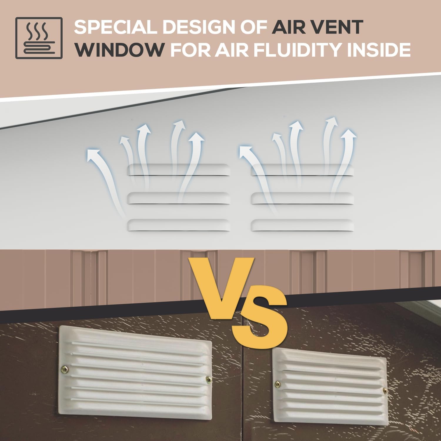 The YODOLLA 10x14 Metal Outdoor Storage Shed features a galvanized coating, which offers superior protection against rust, oxidation, and moisture. The shed ventilation system ensures that your items stay dry by preventing moisture buildup inside. With these protective features, you don’t need to worry about leaks or damage from the weather.
