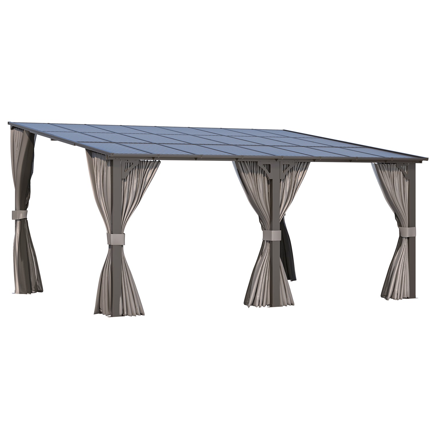 The YODOLLA 16' x 12' Wall-Mounted Hardtop Gazebo is a stylish and durable outdoor shelter perfect for patios, decks, and gardens. Featuring a sturdy metal frame and hardtop roof awning, it provides reliable protection from sun, rain, and wind all year round. The removable curtains and zippered netting offer both privacy and insect protection, allowing you to enjoy outdoor gatherings comfortably. With its spacious design, this lean-to pergola creates an elegant shaded area ideal for dining, relaxing, or entertaining guests. Combining modern aesthetics with long-lasting performance, it’s the ultimate upgrade for your outdoor living space.