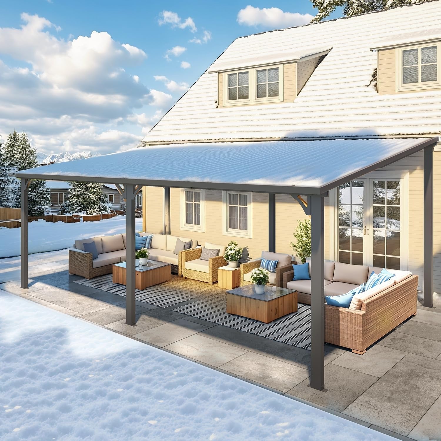 • Handles 20" Heavy Snow: With its galvanized hardtop, this lean to gazebo can take on heavy snow without breaking a sweat. It’s way more durable than those typical polycarbonate panels.