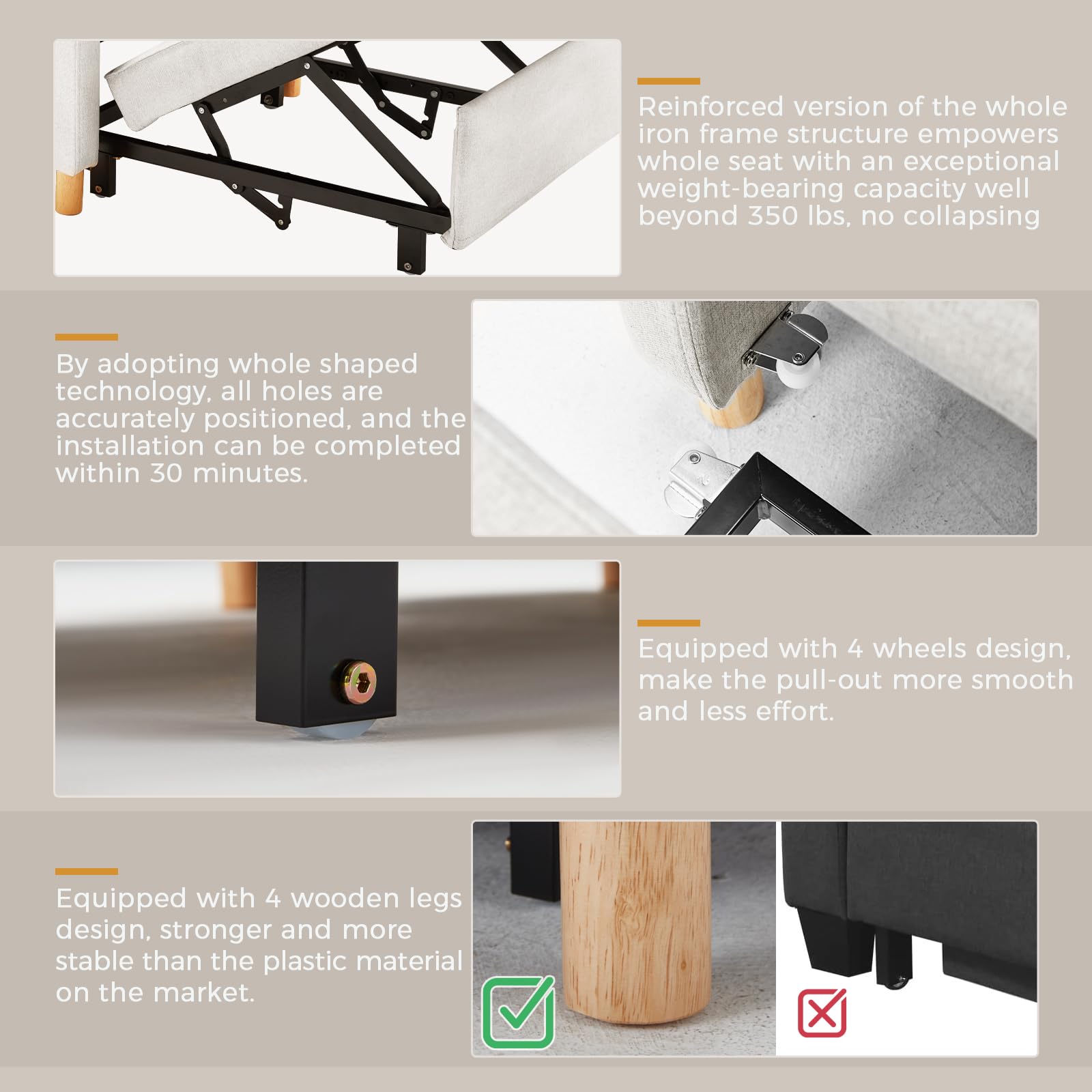 • 【Assembly in 30 Minutes】By adopting whole shaped technology, all holes are accurately positioned, and the installation can be completed within 30 minutes, whether old men or children.