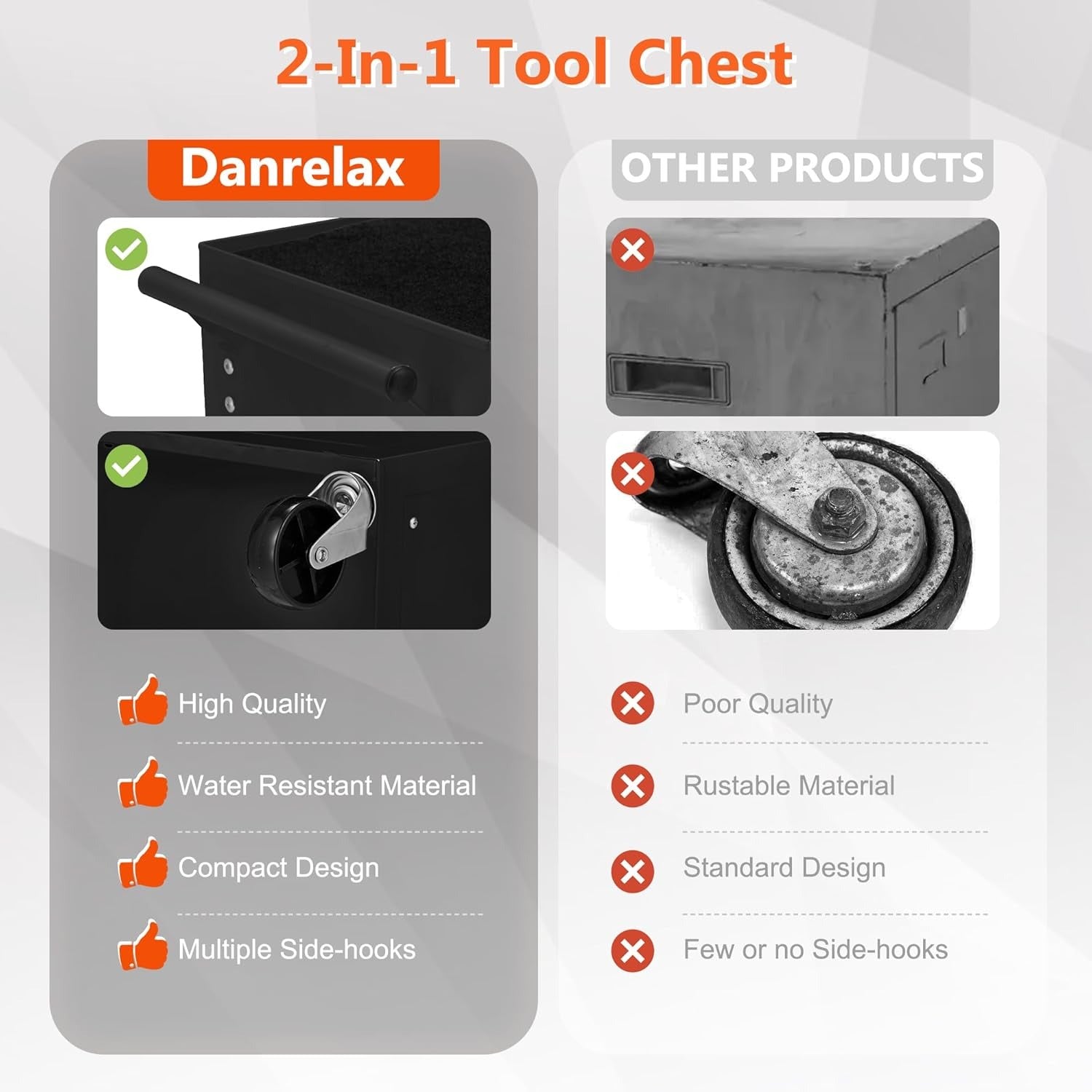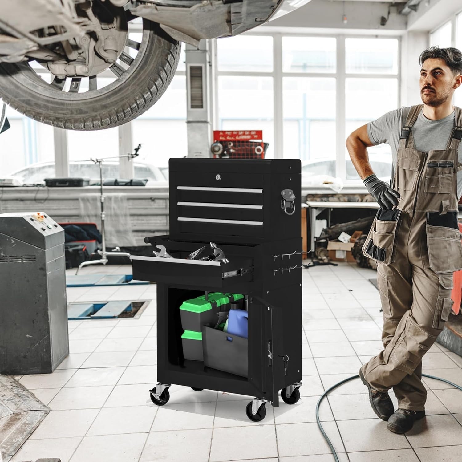 • Compact Yet Spacious: Despite its compact footprint, this tool chest with wheels is designed to maximize storage capacity, making it the perfect solution for workshops with limited space. Its vertical design offers significant storage without taking up too much floor space, allowing you to keep your workspace organized and clutter-free