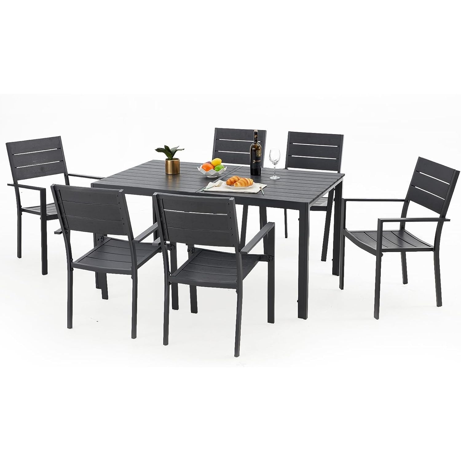 • DURABLE ALUMINUM FRAME: The outdoor dining table is made of powder-coated aluminum frame which is lightweight and rust proof for long lasting use.