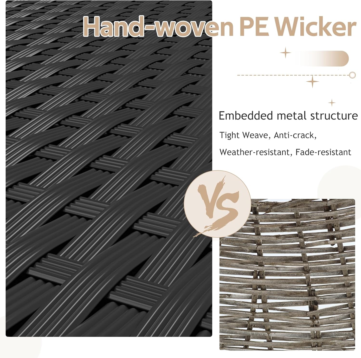 • Durable Hand-Woven PE Wicker: Crafted with premium PE rattan, this wicker outdoor furniture set is built to withstand the elements. It’s UV-resistant, waterproof, and requires minimal upkeep—perfect for enjoying comfort and style throughout the year.