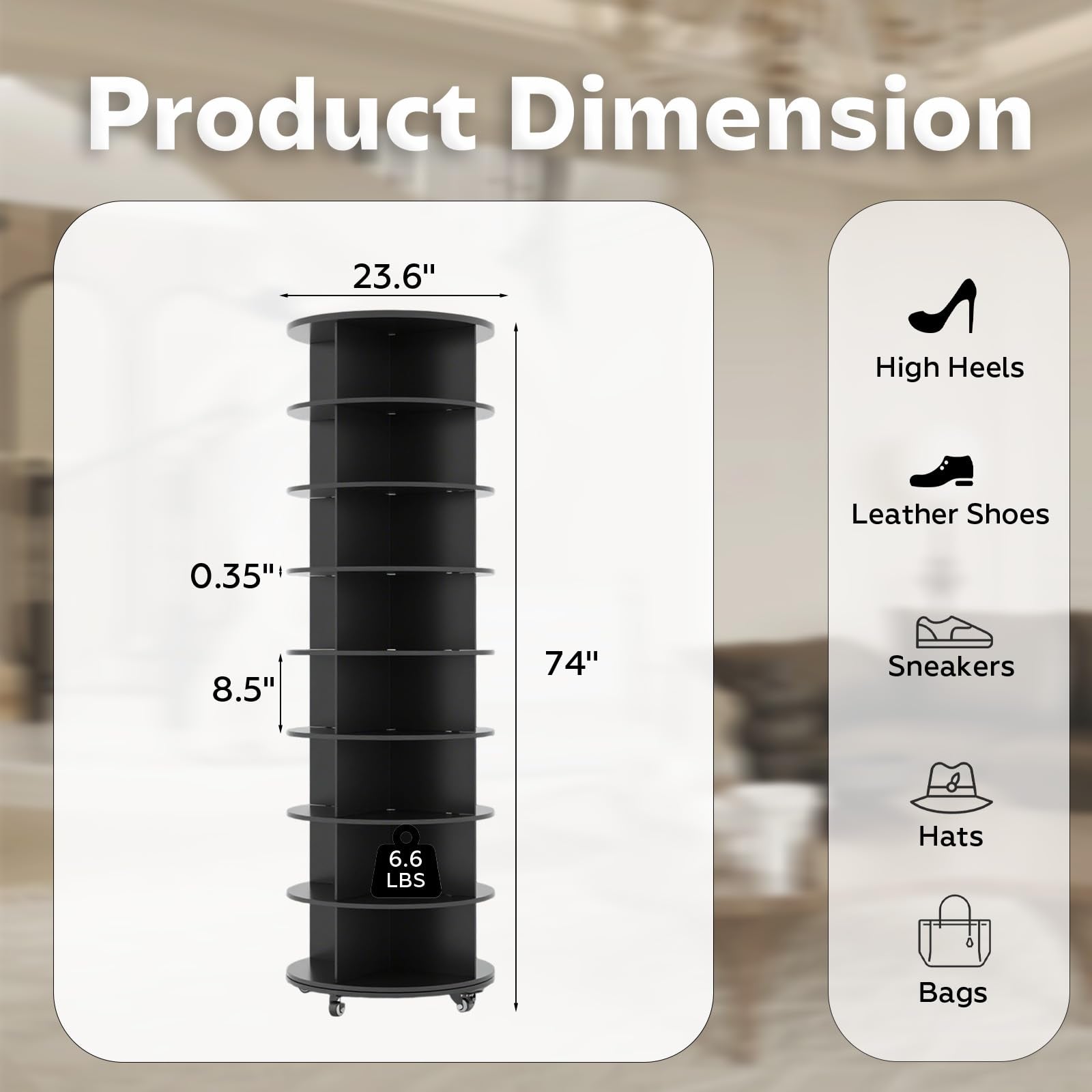 YODOLLA 8-Tier Rotating Shoe Rack with 360° spin design. Space-saving shoe tower for closets, entryways, and bedrooms. Organize sneakers, heels, boots, and more with ease.