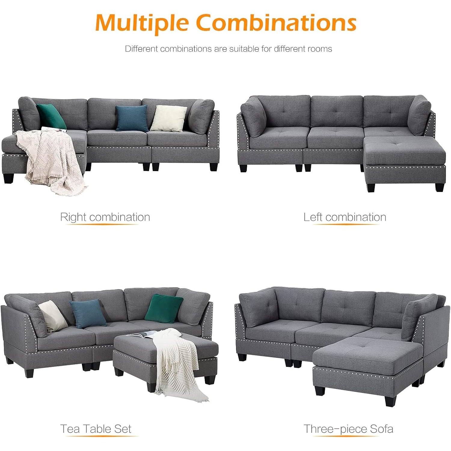 • Classic Nail-Head Design -- The modern nail-head design makes this convertible modular couch set full of fashion and elegance. Sofa: 88.6"(L) x 32.3"(W) x 32.8"(H), Ottoman:30.8"(L) x 29.1"(W) x 17.8"(H), Load up to 330lbs/seat.