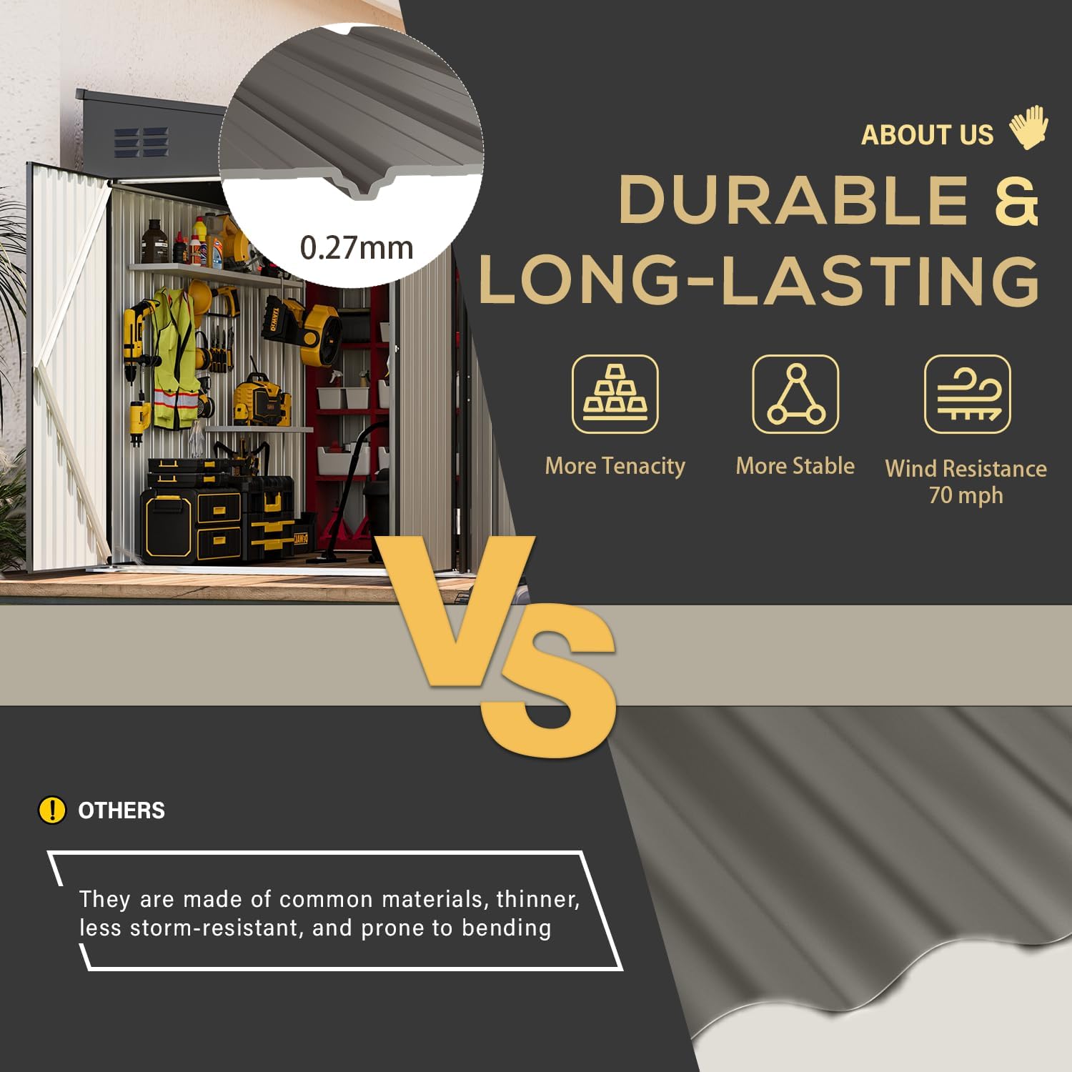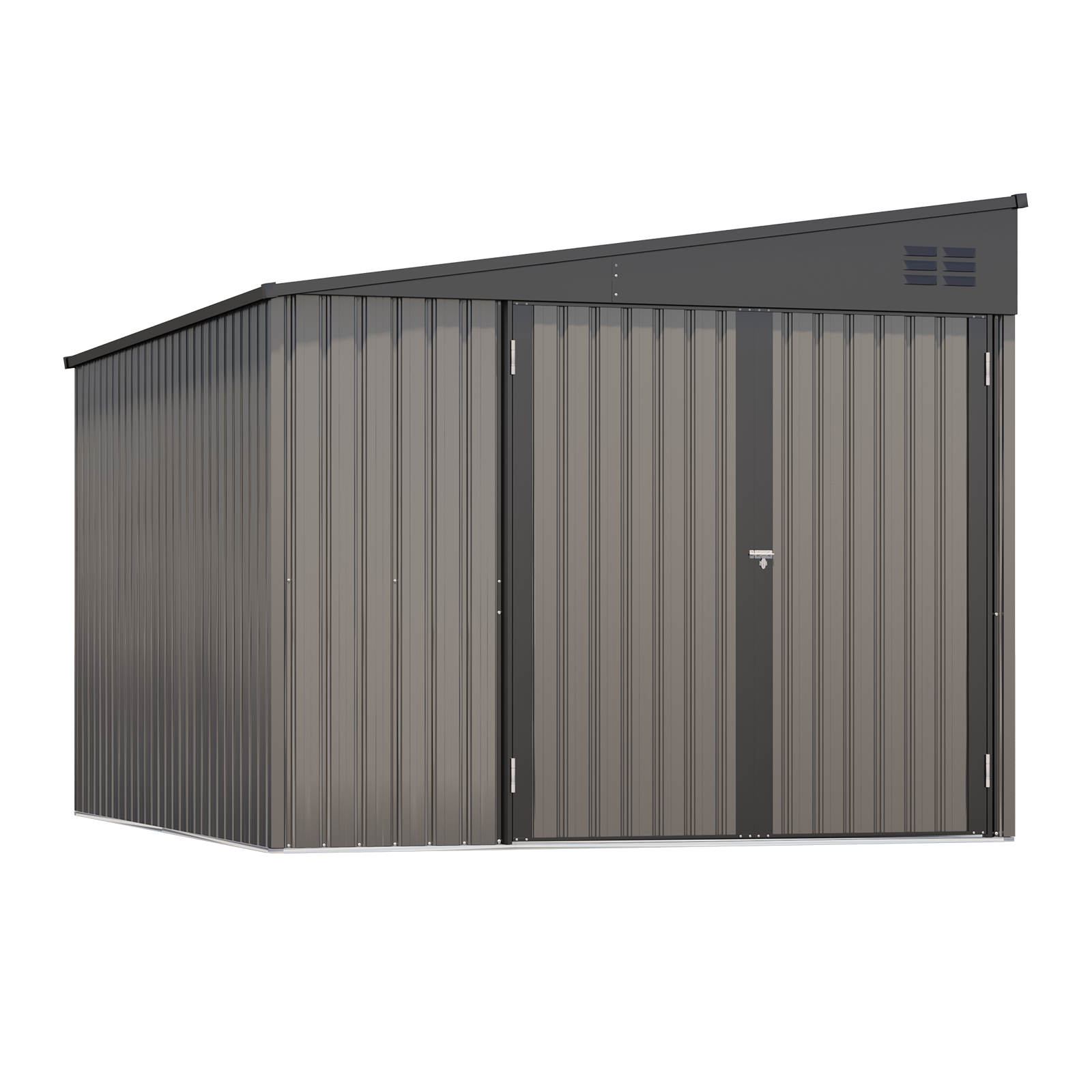 The YODOLLA 8x10 Lean-to Shed in gray offers the perfect metal garden shed for your outdoor storage needs. With a spacious 80-square-foot footprint and a 2.3-foot door, this 8x10 shed provides ample space for up to 10 lawnmowers, 20 bicycles, 8 snowmobiles, or 3 Vespa scooters. It’s ideal for use as tool sheds or tool storage sheds, offering organized space for all your outdoor equipment. Built with galvanized metal, this shed is resistant to rust, oxidation, and moisture, while the sloped roof prevents water accumulation. Enhanced metal plates give the shed added durability and weight, making it a heavy duty shed that withstands severe weather conditions with wind resistance up to 70 mph. The lockable door ensures your belongings stay secure in this lockable storage shed. With easy installation, a 60-day warranty, and 24/7 customer support, it’s the ultimate outdoor storage solution.FAQ