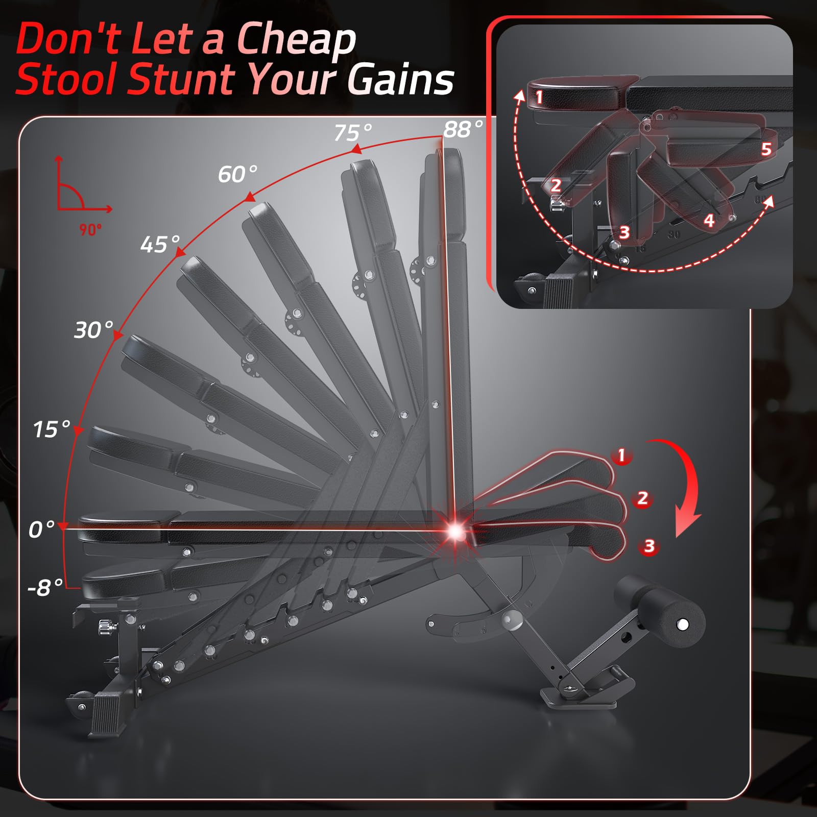 YODOLLA Adjustable Weight Bench — versatile, sturdy bench for flat, incline, and decline workouts. Perfect for home gyms and full‑body strength training.