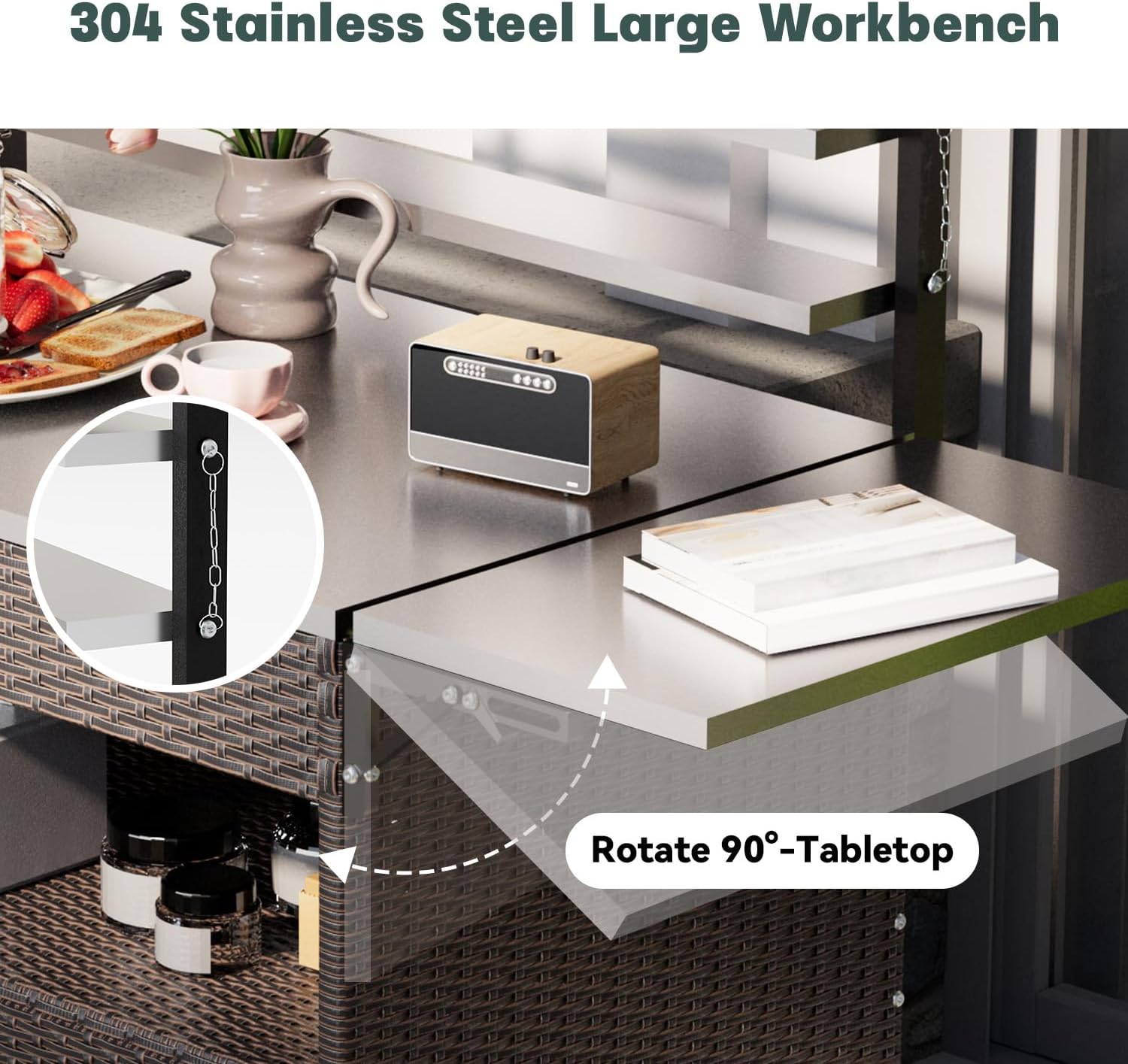 • 【Premium Materials】:Our outdoor food cart is made of top - notch PE rattan and a tough 304 stainless - steel tabletop. Tailored for outdoor settings, it balances beauty and long - lasting use. The materials are odor - free and a cinch to clean. Whether it's sunny or rainy, it remains a great addition to your patio or garden.