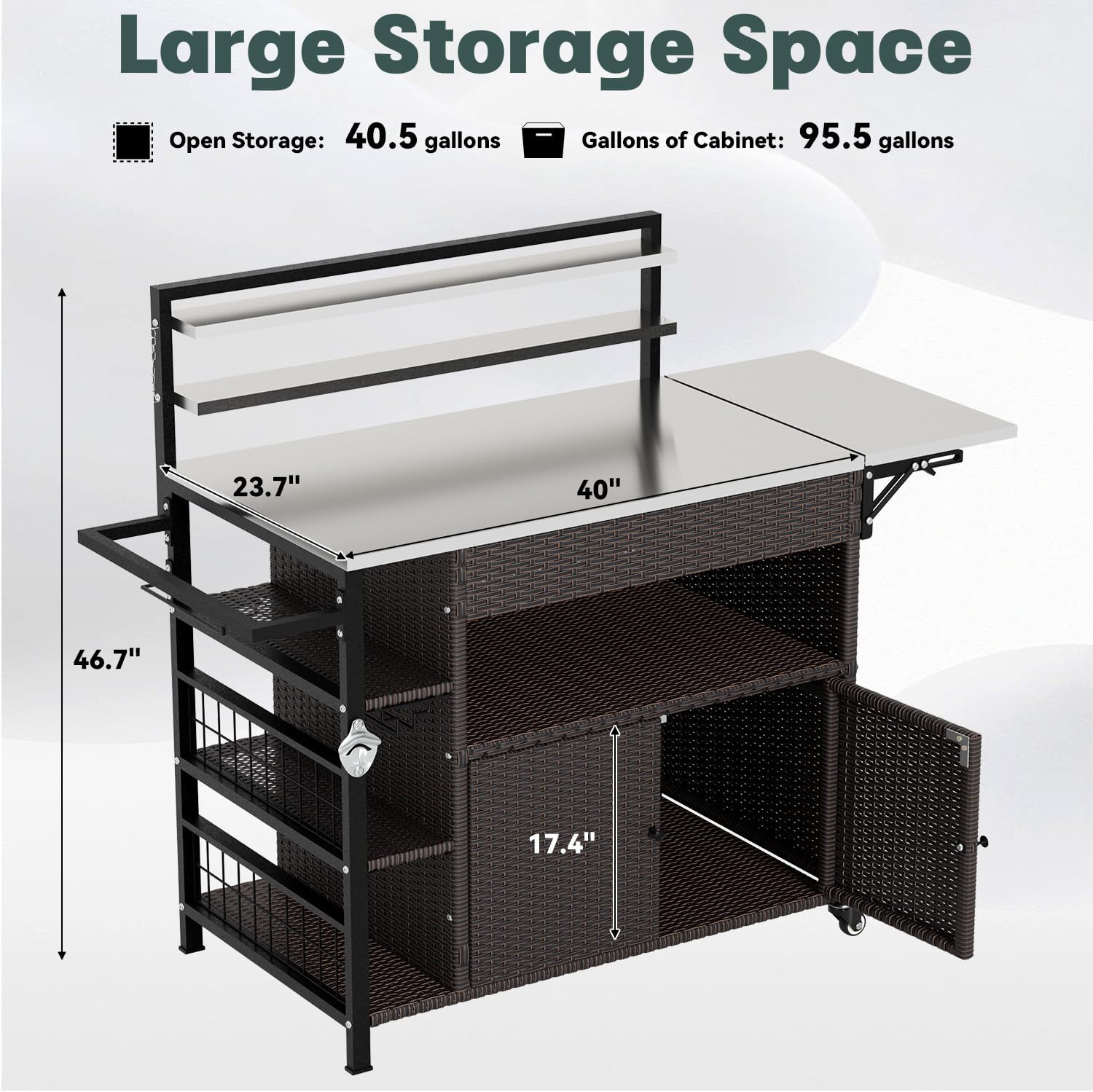 YODOLLA Outdoor Bar Cart with Rattan Storage Cabinet, Brown