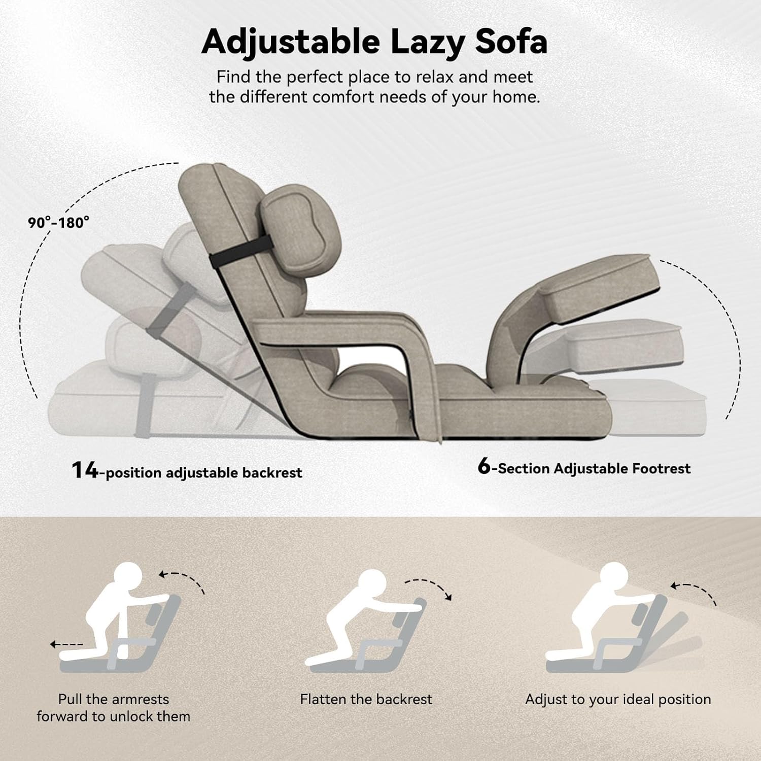 • 【14-level Adjustable Backrest】 Meet your fine-tuning requirements. You can adjust the angle of the backrest from 90° to 180° according to your needs to find the most suitable position for you. We also provide a detachable cushion that you can place on your head or back for maximum comfort.