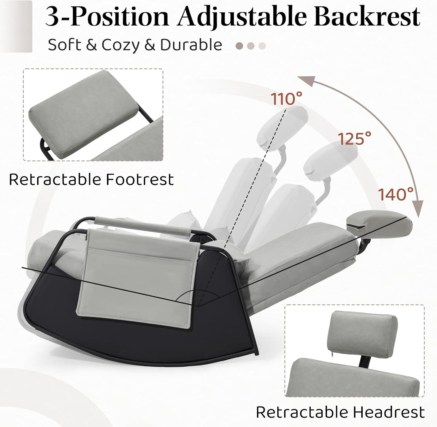 YODOLLA Retractable Gliding Rocking Chair, Gray Leather