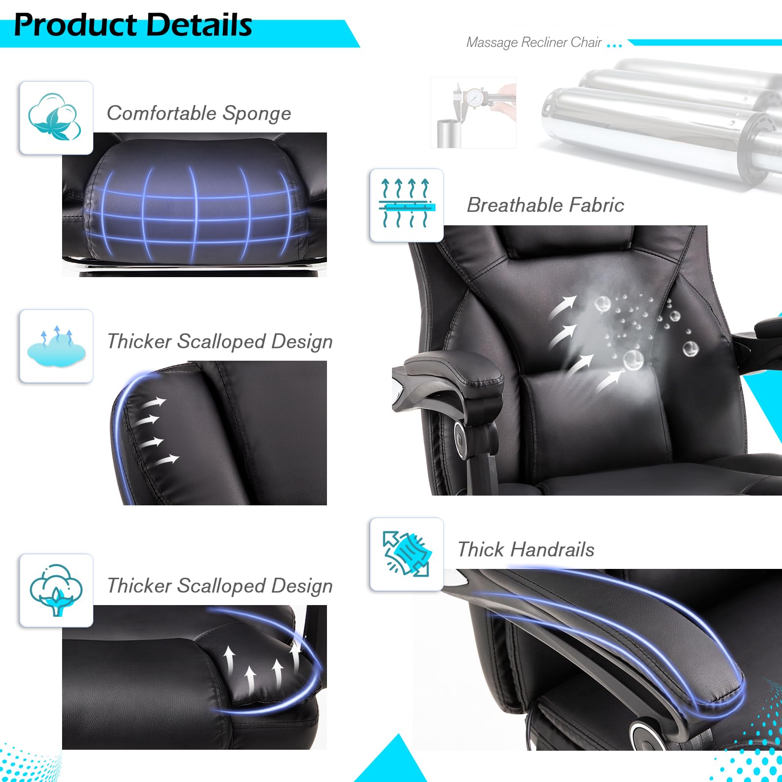 • 【Enjoy Massaging When Working with Our Massage Office Chair】 7 massage points distributed on the back and legs,and one-touch heating function would give you some pleasure and relaxation when working,the massage function could easily be controlled with the remote control