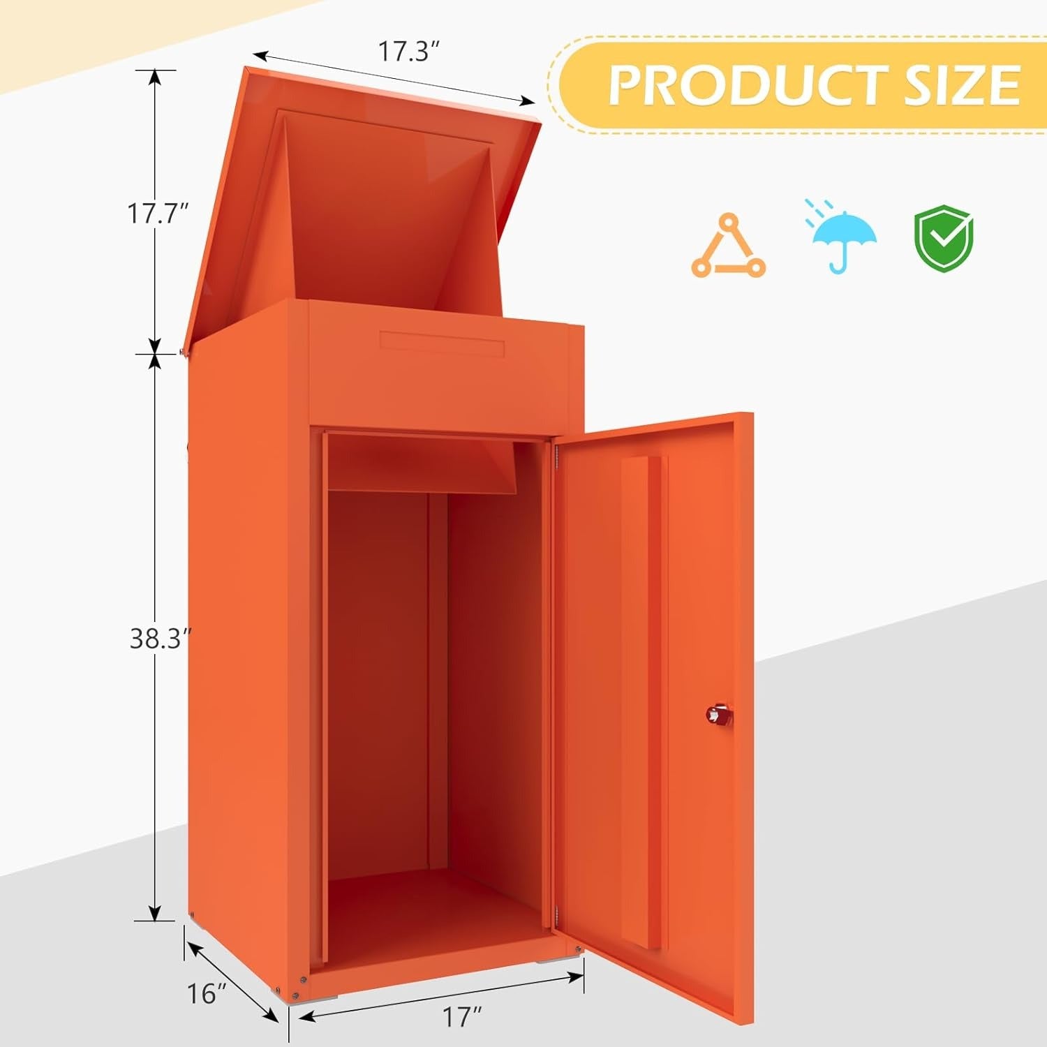 YODOLLA Lockable Anti-Theft Parcel Drop Box With Mailbox For Porch Fence Curbside, Orange