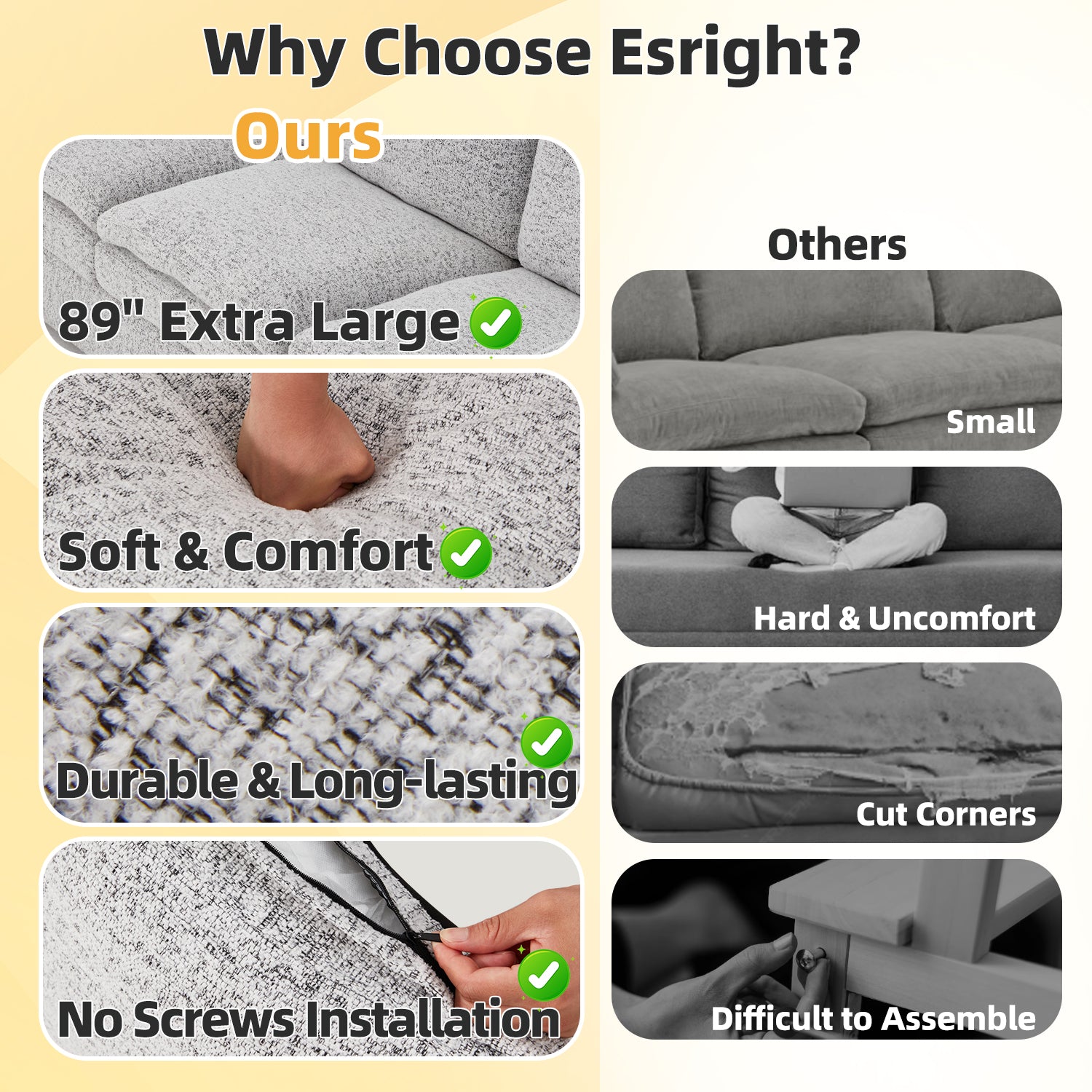 • 【89" LARGE SIZE】: The 89" sofa allows you to snuggle up on the living room sofa for naps, movies, reading and quality time. Lay back on the living room sofa, close your eyes and let the fatigue and stress of the day dissipate