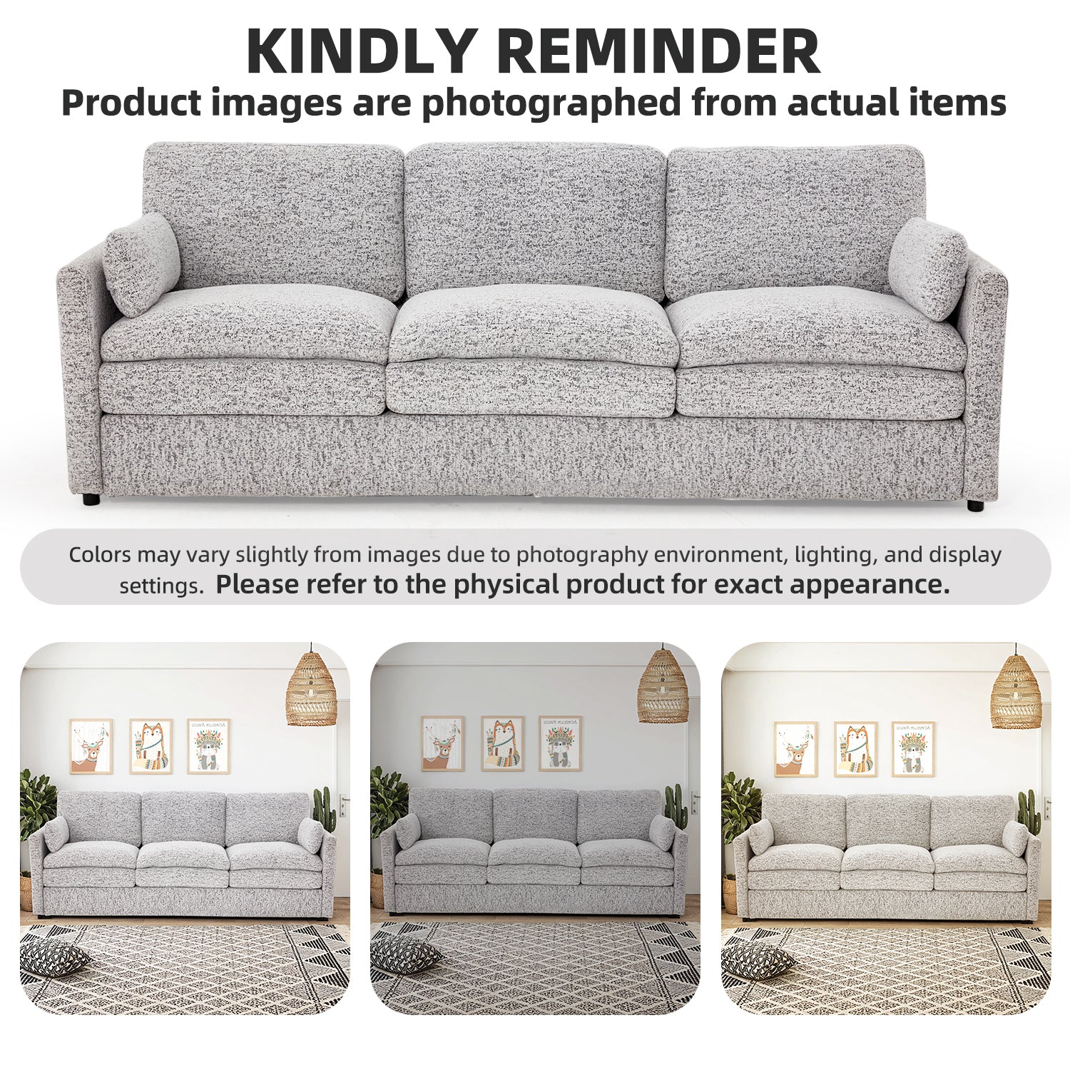YODOLLA 89" Chenille Sofa, 3-Seater, 2 Removable Pillows, Gray