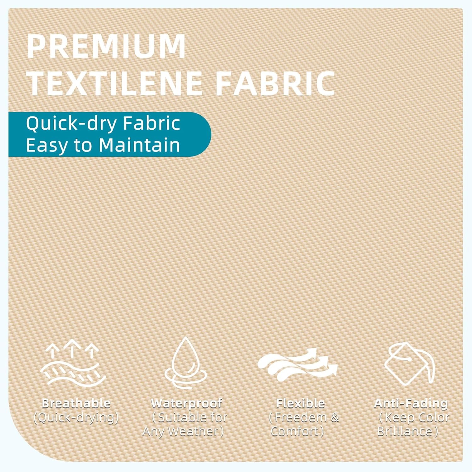 The chair features Textilene fabric, which is breathable, UV-resistant, and cool to the touch. It resists stretching, tearing, and fading—making it ideal for outdoor chaise lounges exposed to sun and heat.
