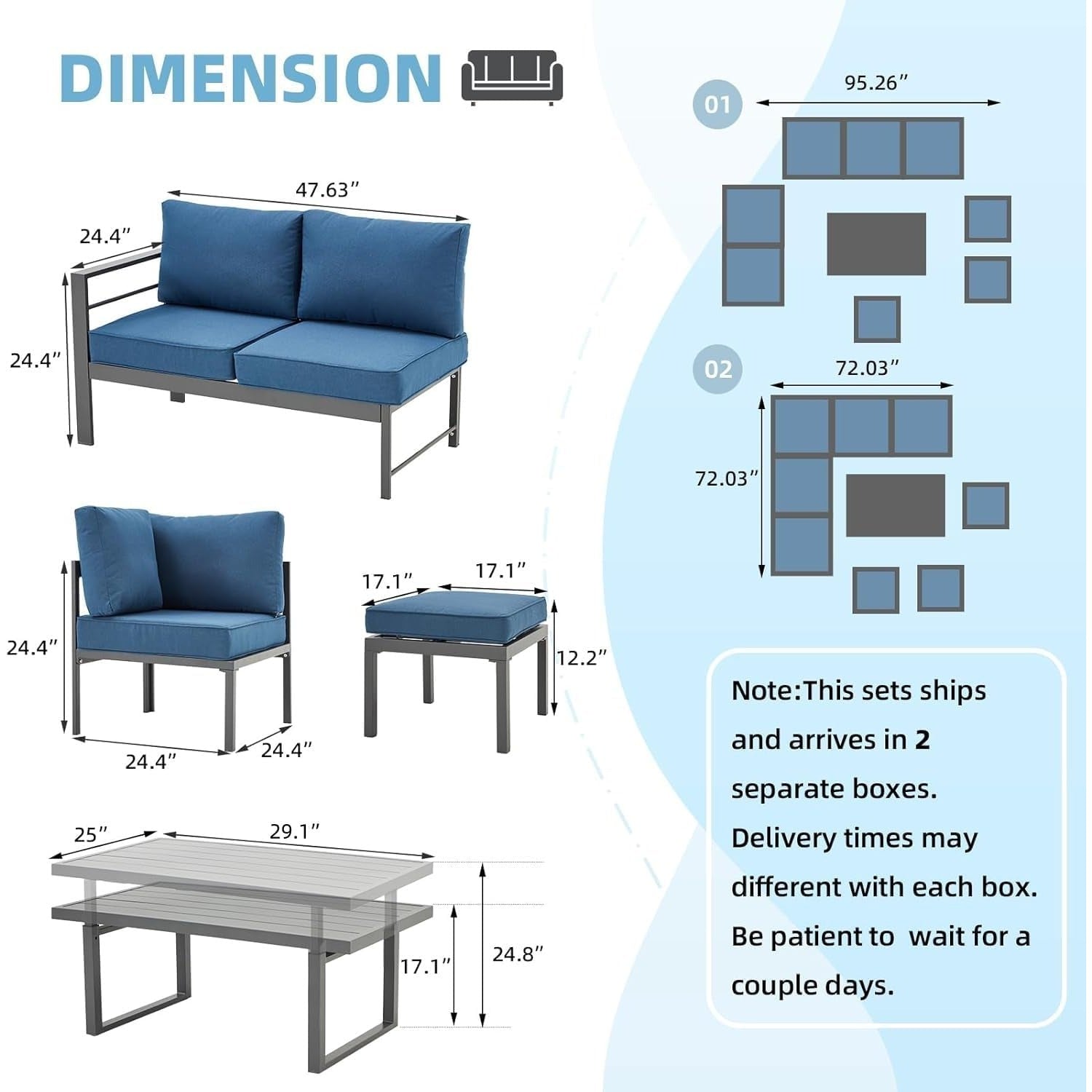 • 【Multiple Combination Modes】 - Our aluminum patio conversation set contains four furniture parts, including one right loveseat sofa, one left loveseat sofa, one corner loveseat sofa, one coffee table. You can combine them at will according to your mind or different occasion. If you own one, you will own multiple styles of outdoor sofa sets!