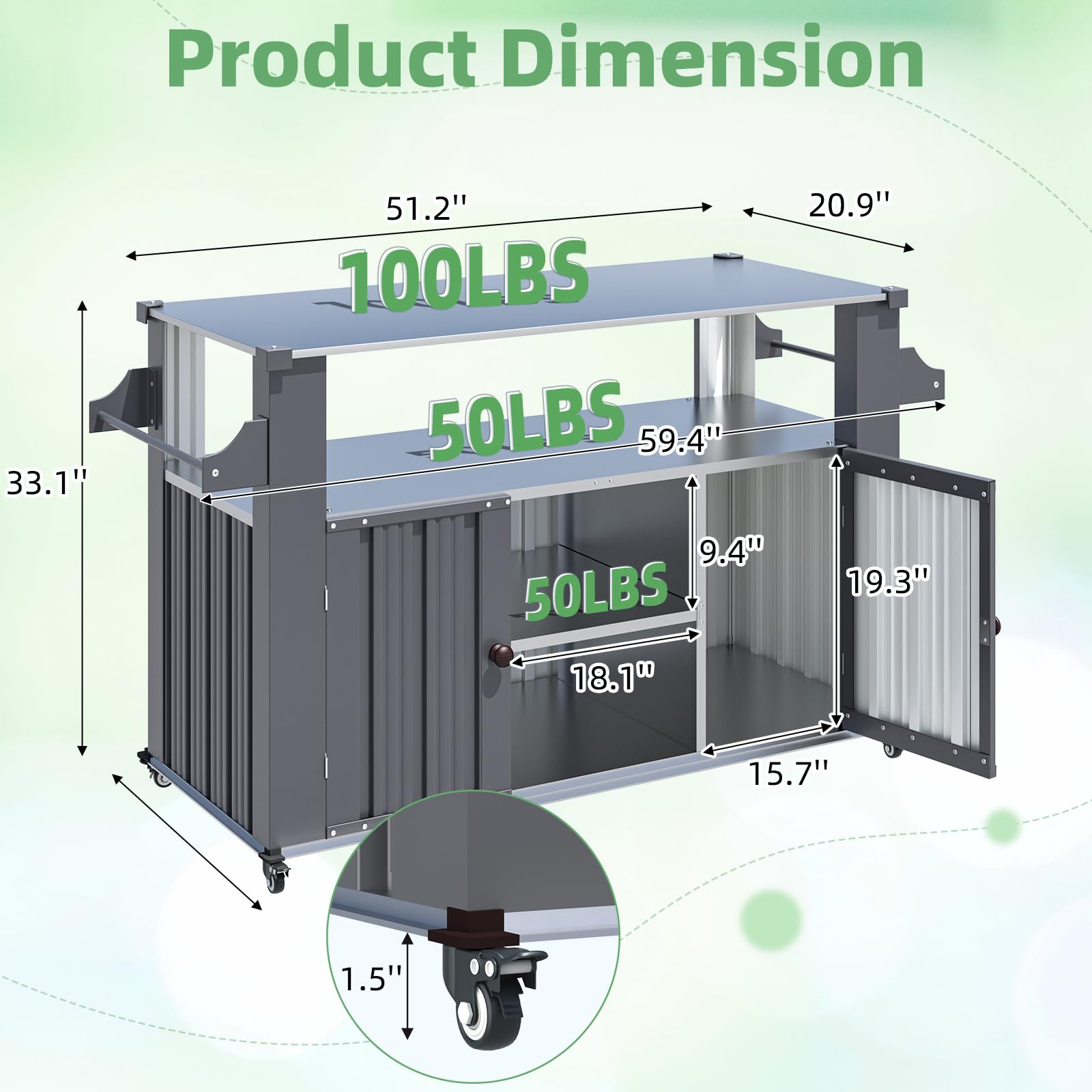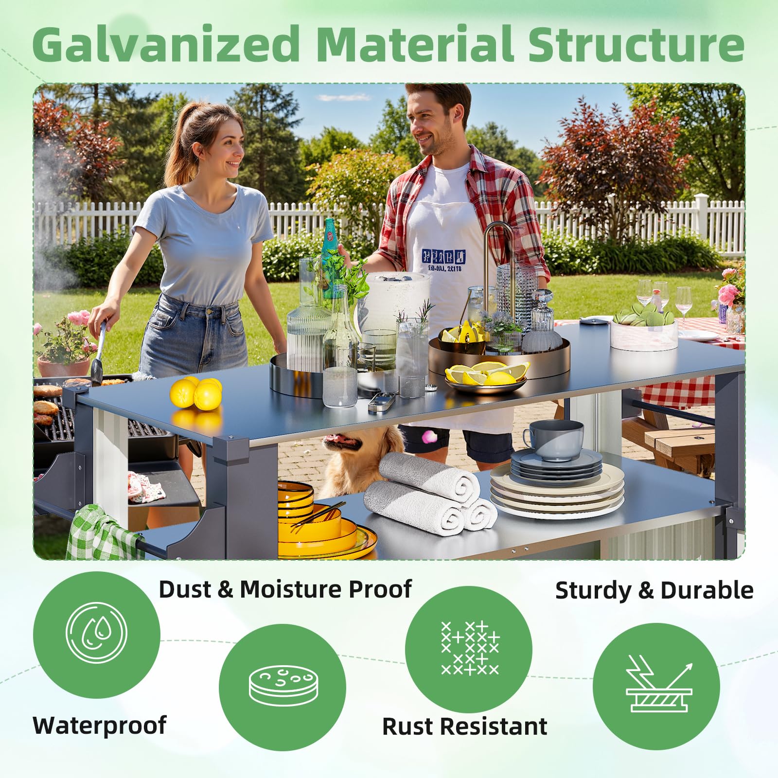 YODOLLA Outdoor Grill Table Cart — sturdy prep station with wheels, storage shelves, and durable surface. Ideal for backyard BBQ and outdoor cooking prep.