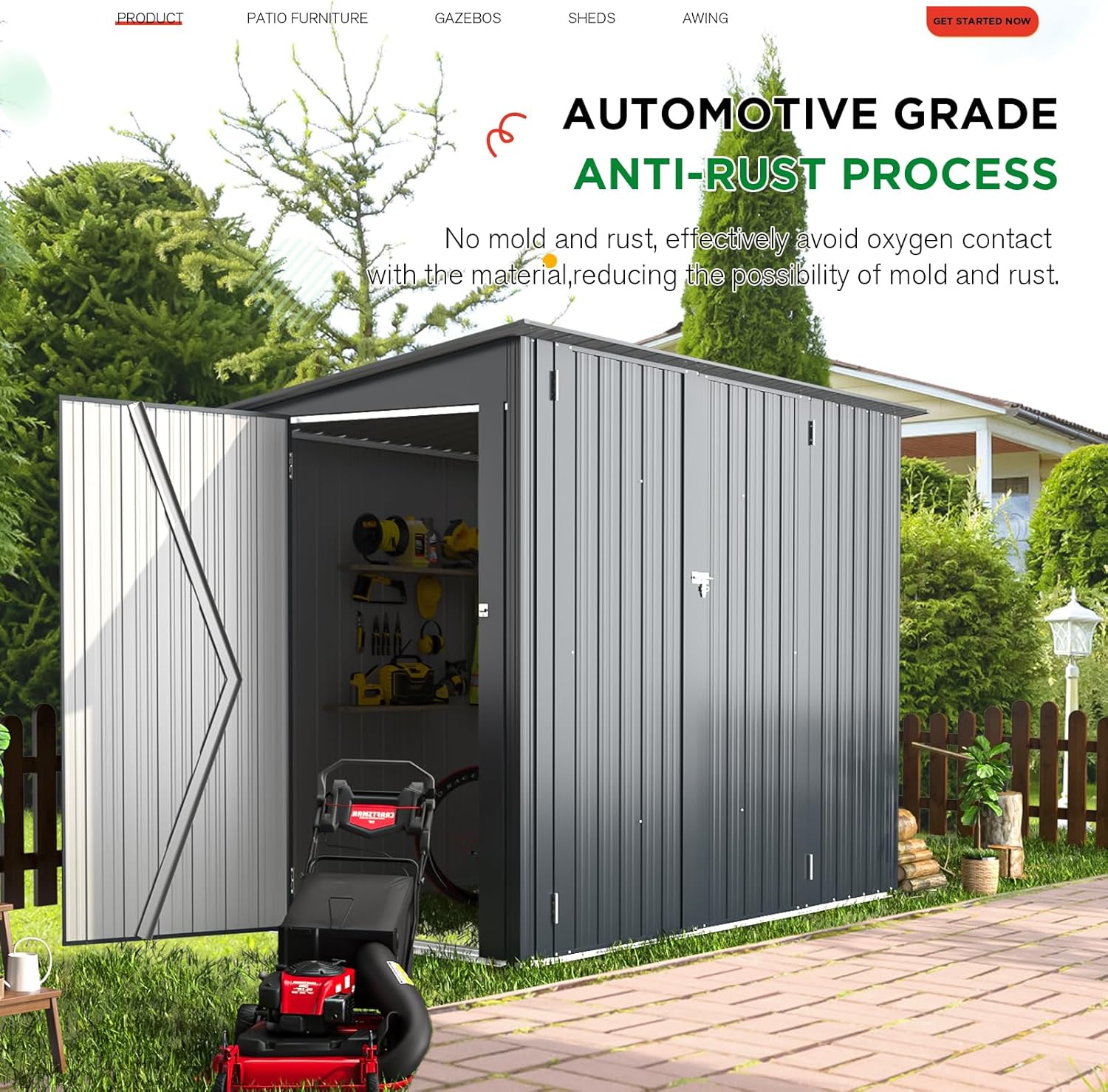 The YODOLLA 7x4 Shed offers superior durability with its reinforced metal plates, making it sturdier than cheaper alternatives. The bicycle storage shed design includes adjustable shelving for better organization, while the double door shed provides easy access to your stored items. Plus, the galvanized coating protects it from the elements, ensuring your belongings stay safe and dry.