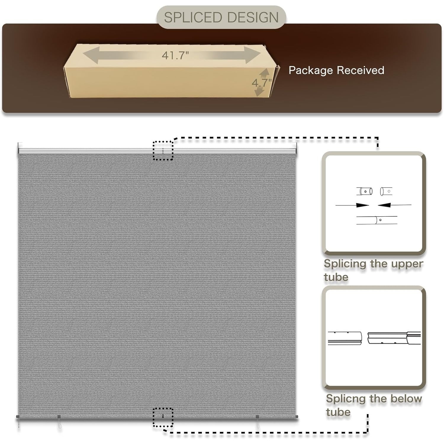 YODOLLA Outdoor Roller Shade, Sun Shade Cover Canopy with 99% UV Protection, Gray