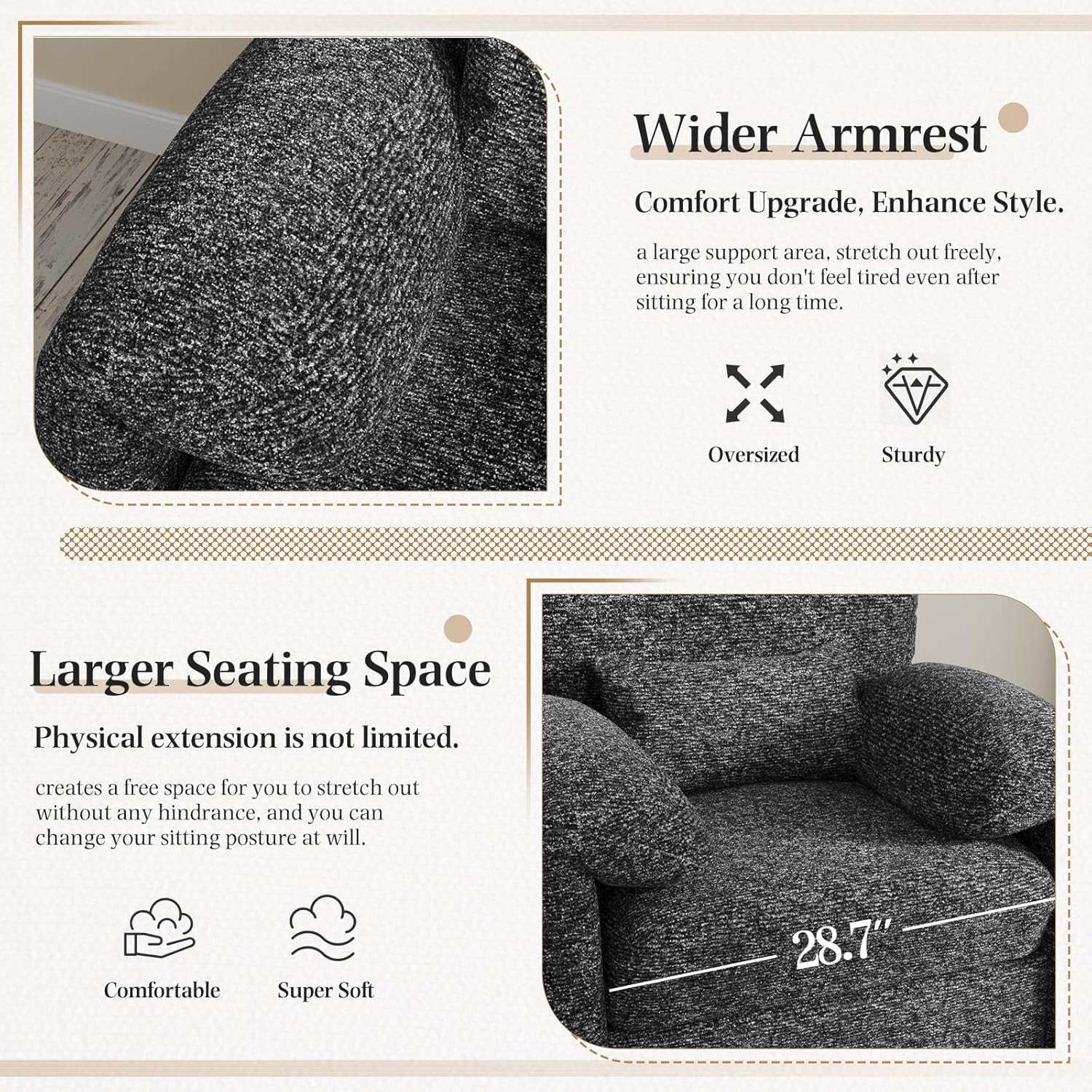 YODOLLA Oversized Armchair, Chenille Mid Century Accent Chair, Comfy Upholstered Single Sofa, Extra Wide Reading Chairs