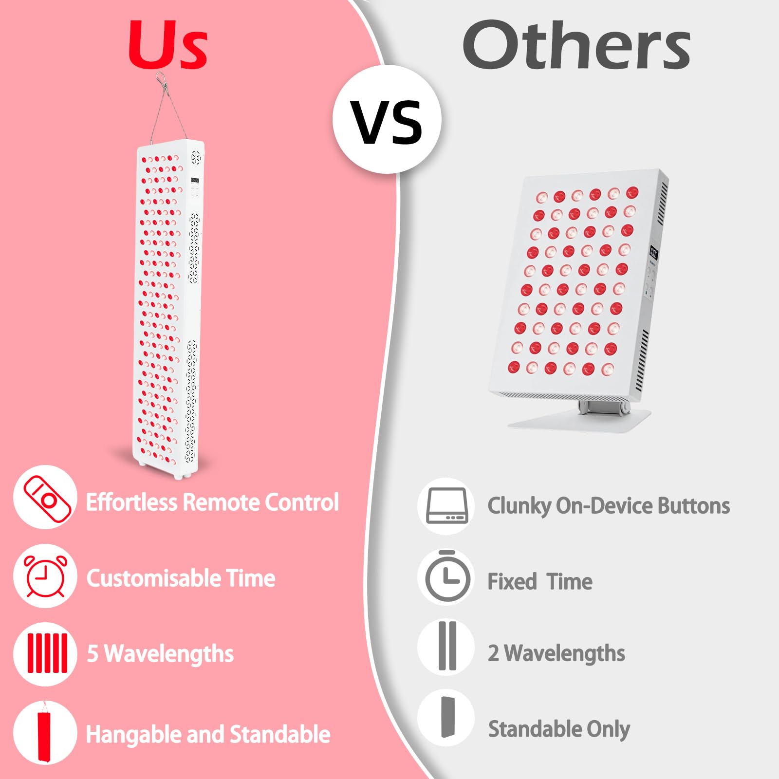• 5 Wavelength Plus180 LEDs Red Light Therapy: Unlike most 2-wavelength devices, ours offers 630nm, 660nm, 810nm, 830nm, 850nm (18/72/9/9/72 LEDs). 630nm/660nm boost skin health; 810nm/830nm/850nm penetrate deep for muscle/joint relief