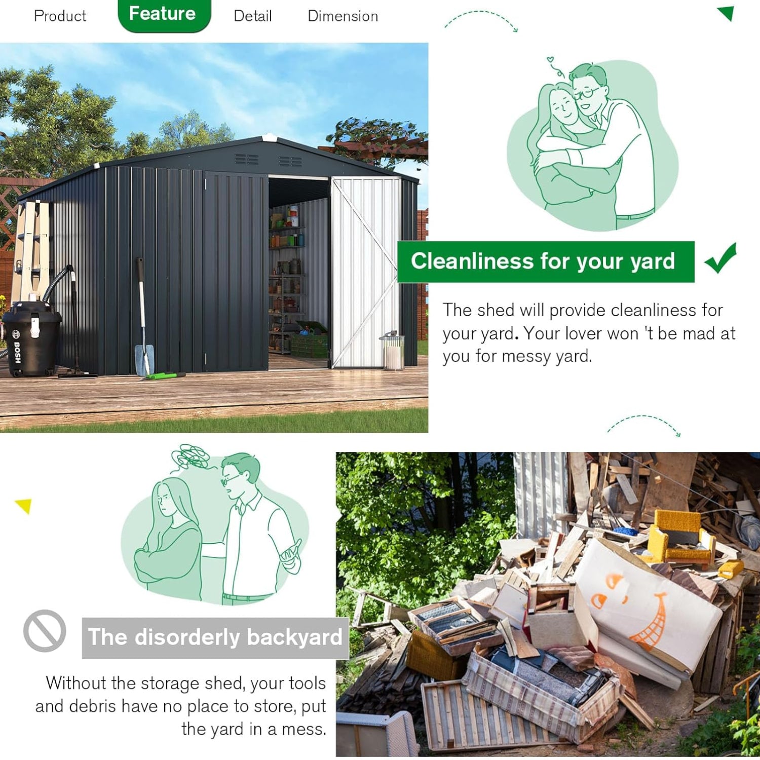 A 10x12 metal shed like the YODOLLA shed offers 116 square feet of usable space—perfect for storing gardening equipment, bicycles, lawn mowers, or even converting into a backyard tool shed or pet shelter. It’s one of the most versatile backyard sheds available.