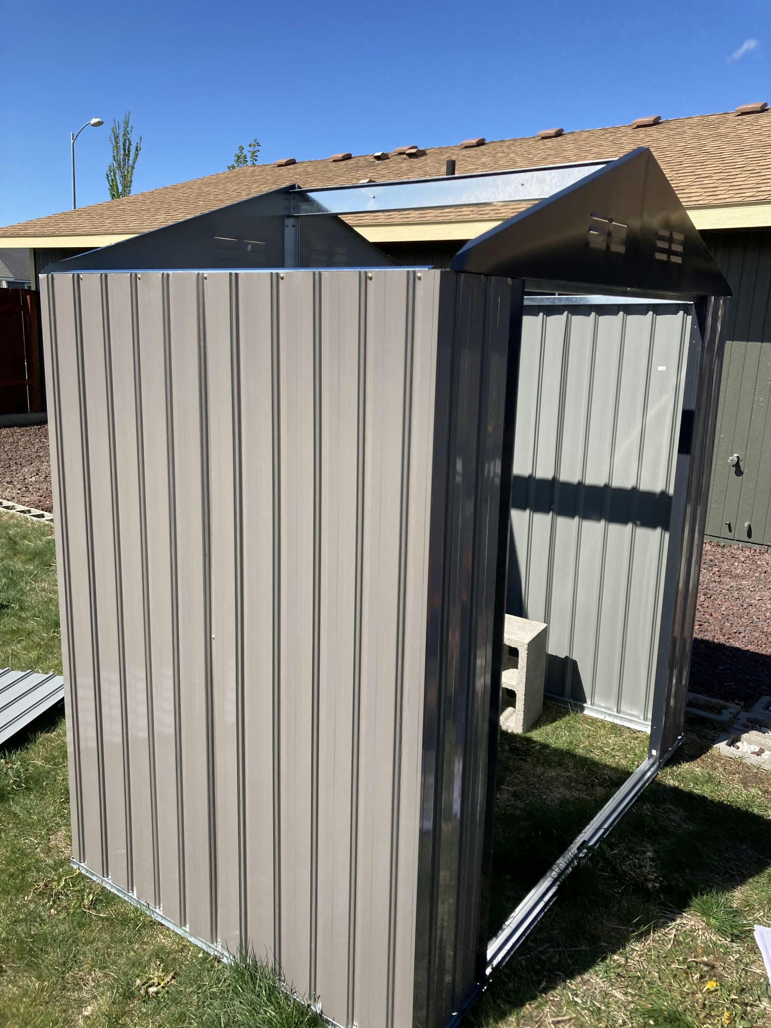 A: Yes. Weighing 99 lbs and constructed with strengthened steel panels, this model qualifies as a heavy duty shed—offering more stability and durability than cheaper lightweight alternatives.