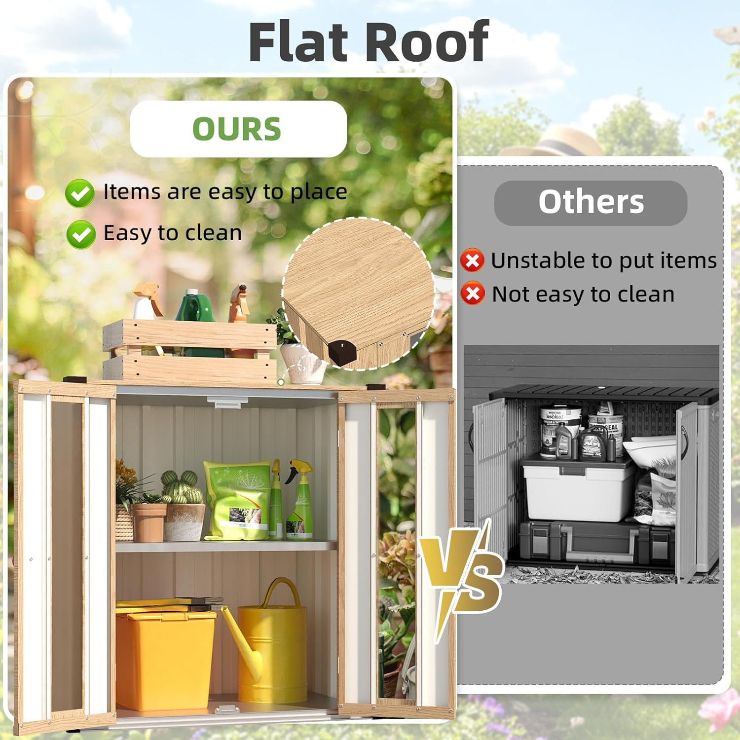 YODOLLA Small Outdoor Storage Cabinet Waterproof, Wood Grain