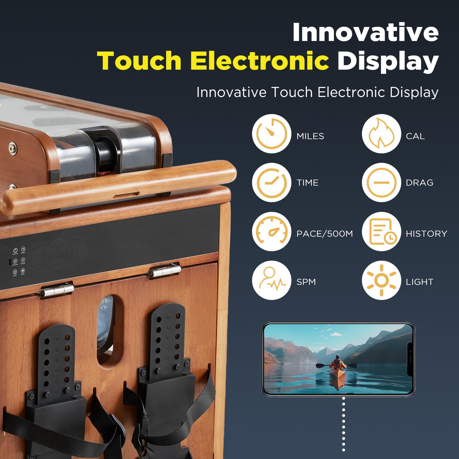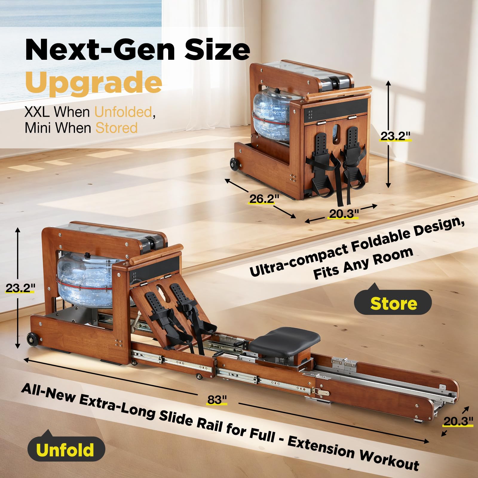 • Premium Materials for Unmatched Comfort: Crafted with a solid wood frame and aircraft-grade aluminum rails, this compact rowing machine minimizes wobble and ensures whisper-quiet operation while delivering a natural rowing sound. Ergonomic features include adjustable footplates, a padded seat, and anti-slip handles for personalized comfort. Designed for long-term durability even with frequent use