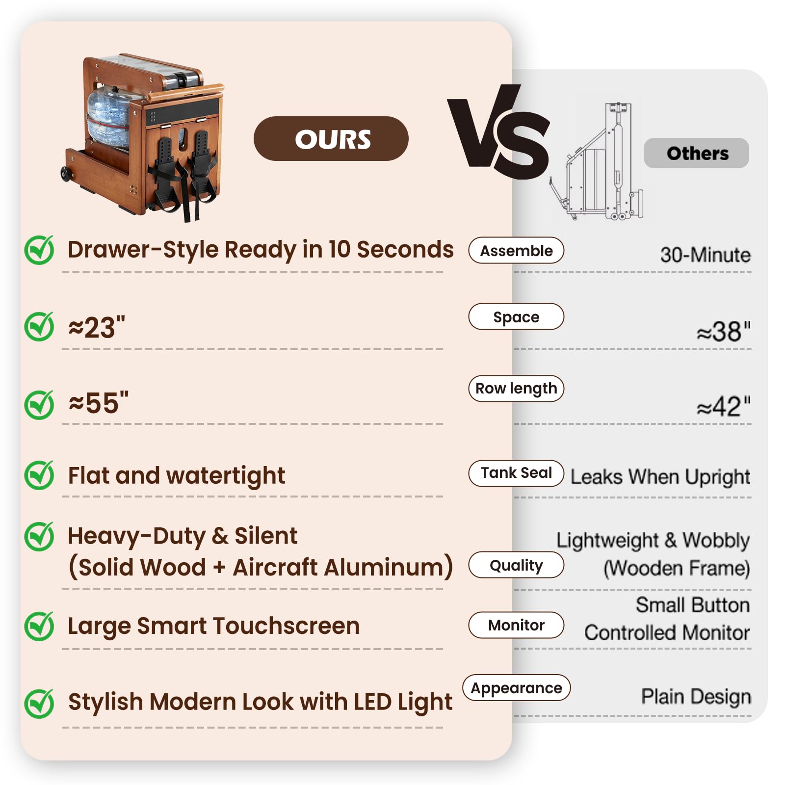 • Immersive Water Rowing Experience: The upgraded tank system combines natural water resistance with precise magnetic resistance adjustment, delivering a real paddling feel while allowing you to fine-tune intensity. The resistance adapts dynamically to your rowing speed, and the gentle wave sound creates a calming environment—blending relaxation with high-intensity calorie burn